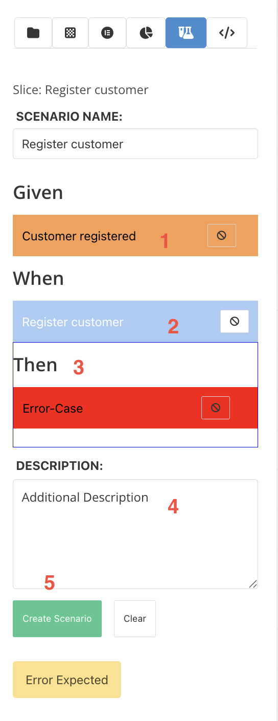 Use this View to define Given / When / Thens in the Scenario Editor. You need to select a slice first.
